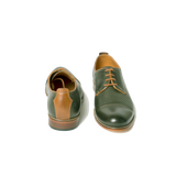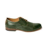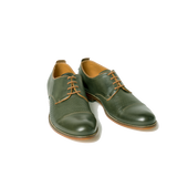 Meet the Dreamer Derby Shoe. This shoe is one of our most popular designs. The Derby is literally a work of art. The perforated portion of this shoe was designed to capture attention and preserve the integrity of the leather from displaying the typical creased lines often found on other leather dress shoes. Featured here in our most unique color, Olive Green.