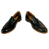 Meet the Morgan Loafer. Simply put, these loafers are a bold spin on the traditional penny loafer. The sleek body of this design looks exceptionally dapper. You can’t go wrong with these. Made with our signature Penny Luck elements – including our two toned leather patterns, shapely strap on the heel and our Trade Marked lucky penny soles. Featured here in Stealth Black.