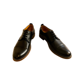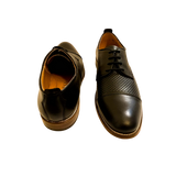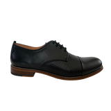 Meet the Dreamer Derby Shoe. This shoe is one of our most popular designs. The Derby is literally a work of art. The perforated portion of this shoe was designed to capture attention and preserve the integrity of the leather from displaying the typical creased lines often found on other leather dress shoes. Featured here in Stealth Black.